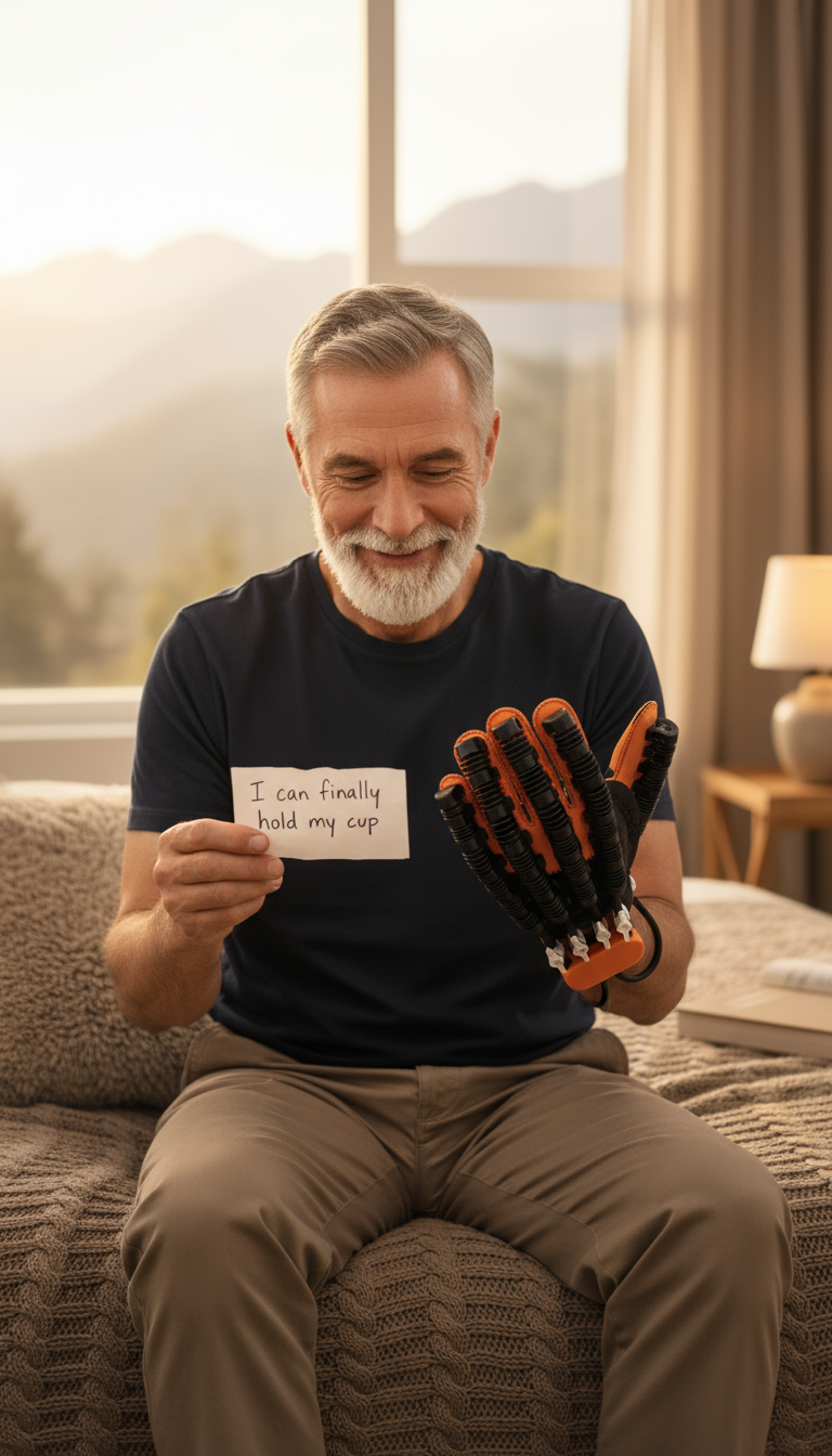 Our glove empowers users to do real tasks—not just clinical exercises. Whether it’s prepping meals, folding laundry, or turning pages, you’ll finally be able to participate in life, not just therapy. That’s what real recovery looks like.